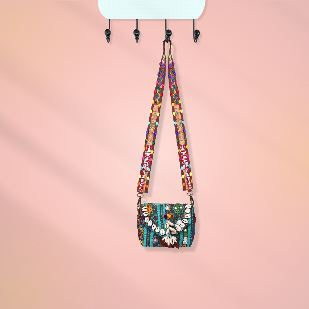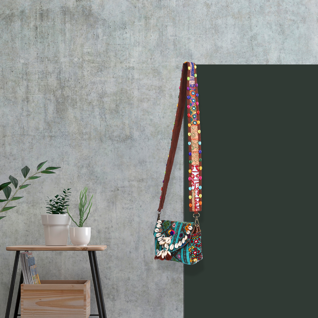Add a touch of vibrant tradition to your look with this Handcrafted Bohemian Sling Bag for Women, beautifully designed with mirror work, colourful embroidery, shells, and pom-pom tassels. Each bag is uniquely handmade by skilled Indian artisans, making every piece a true work of art.