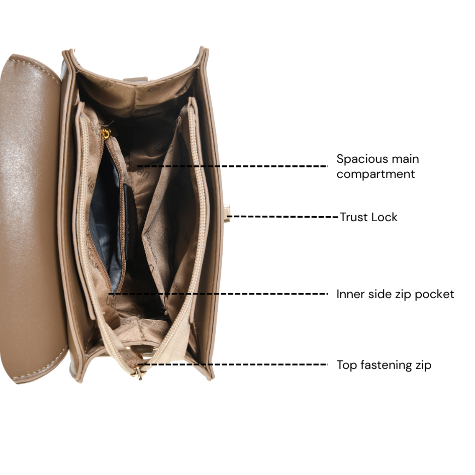 Design:Â Two-tone texture with elegant metallic bronze tone hardware