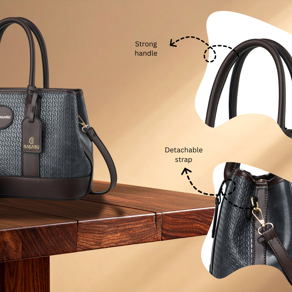 Luxury Textured Two-Tone Handbag Set for Women – 3 Pcs Combo with Wallet & Card Holder | Elegant Brown & Gray Vegan Leather Tote