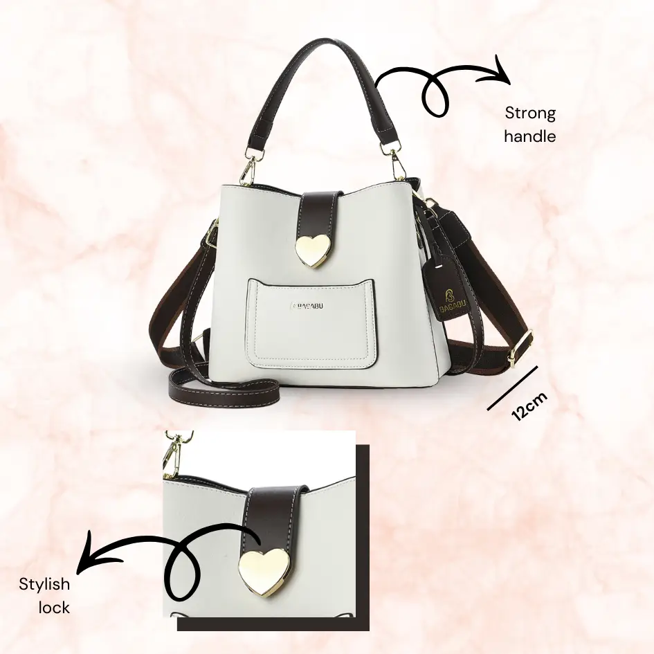 Bring charm and functionality together with this Elegant Brown Dual-Strap Handbag, designed to complement every outfit and occasion. Crafted from premium vegan leather, this handbag features a unique heart-shaped clasp and a spacious front pocket, adding both style and convenience. With two detachable straps — a sleek leather strap for a classic look and a wide fabric strap for a trendy touch — this bag adapts effortlessly from office chic to weekend casual. Durable, lightweight, and fashion-forward, it’s the perfect everyday essential for modern women.