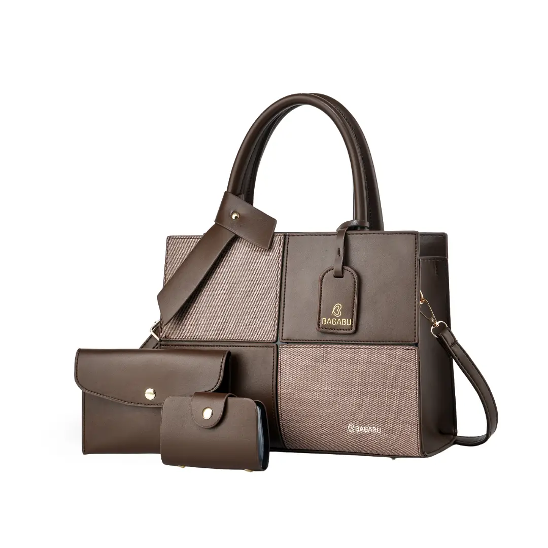 Step into timeless elegance with this Luxury 3-Piece Vegan Leather Handbag Set, crafted for the modern woman who values both style and sustainability. The chic patchwork design blends smooth and textured finishes, creating a sophisticated look perfect for office, travel, or casual outings. Designed with precision, this handbag ensures durability, functionality, and a touch of luxury—all cruelty-free.